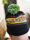 Tuque chaude avec pompon aux couleurs du 4e anniversaire du bar à café.